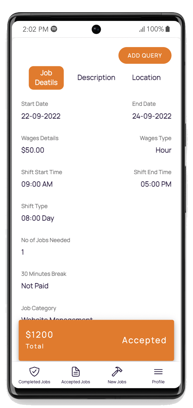 Finding and posting a job have been made as easy as eating a pie. You just need to fill out all the required fields to create a job. Click the accept Button to Accept.